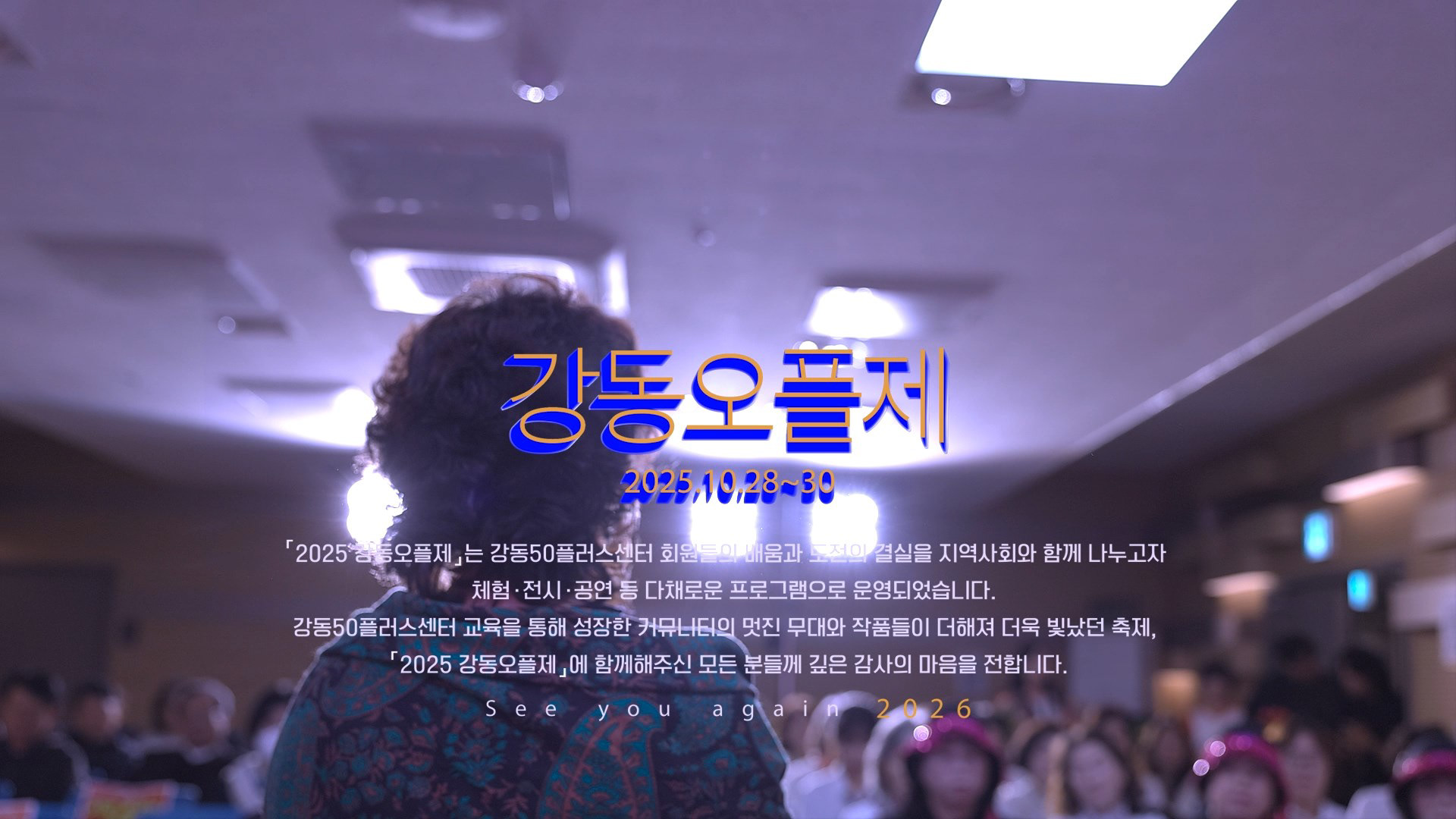 강동오플제 현장에서 느꼈던 그 뜨거운 에너지가 여러분의 일상에도 닿기를 바랍니다. 더 나은 내일을 향한 강동구 50+ 세대의 행보를 함께 응원해 주세요!!!